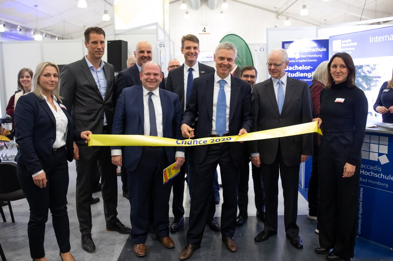 Dr. Manuel Lösel (Mitte) eröffnete mit dem Banddurchschnitt offiziell die Chance 2020 Foto: Sieber/Picturebaer