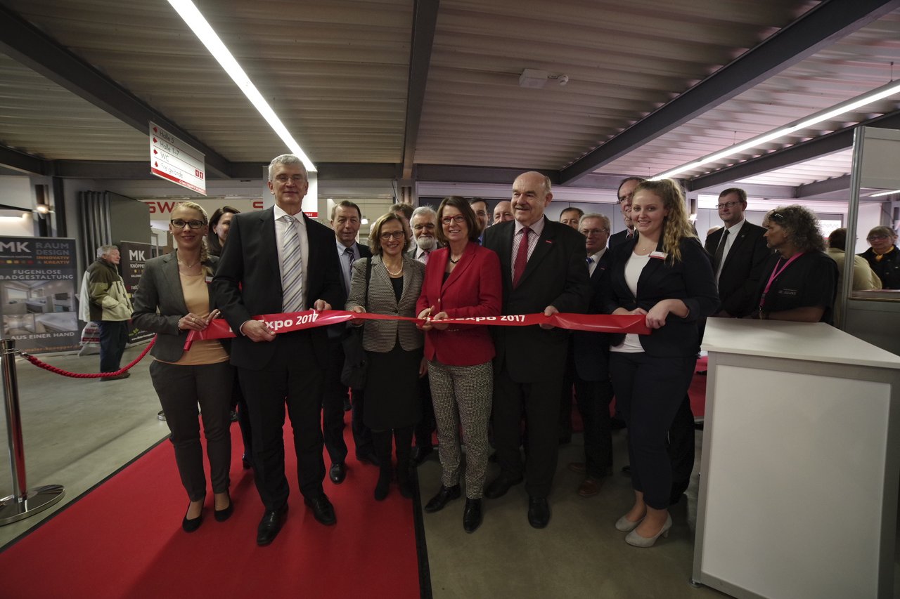 Im Anschluss an die Grußworte durchtrennte Priska Hinz das Band und eröffnete die Messe damit offiziell. Während eines Rundgangs durch die acht Hallen konnten sich die Eröffnungsgäste anschließend einen ersten Eindruck von der Vielfalt des Ausstellungsspektrums der diesjährigen BAUExpo verschaffen.