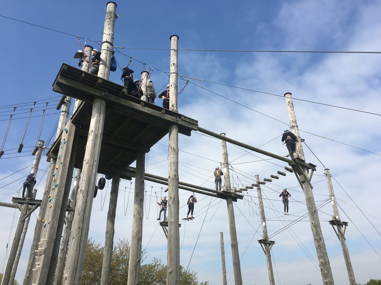 Die meisten richtigen Antworten erreichte die Klasse 10f der Adolf-Reichwein-Schule Pohlheim und konnte jetzt ihren Gewinn einlösen: ein Team-Training im Hochseilgarten Wölfersheim. Gemeinsam mit ihrem Lehrer Gregor Verhoff und unter Anleitung von Britta Friedrich (TresFun GmbH) mussten die Schüler in luftiger Höhe Hindernisse überwinden, in zehn Metern Höhe balancieren und geschickt von Plattform zu Plattform gelangen. Eine Menge Spaß, das Miteinander und Teamgeist standen dabei im Mittelpunkt - aber auch die Überwindung von individuellen Grenzen.