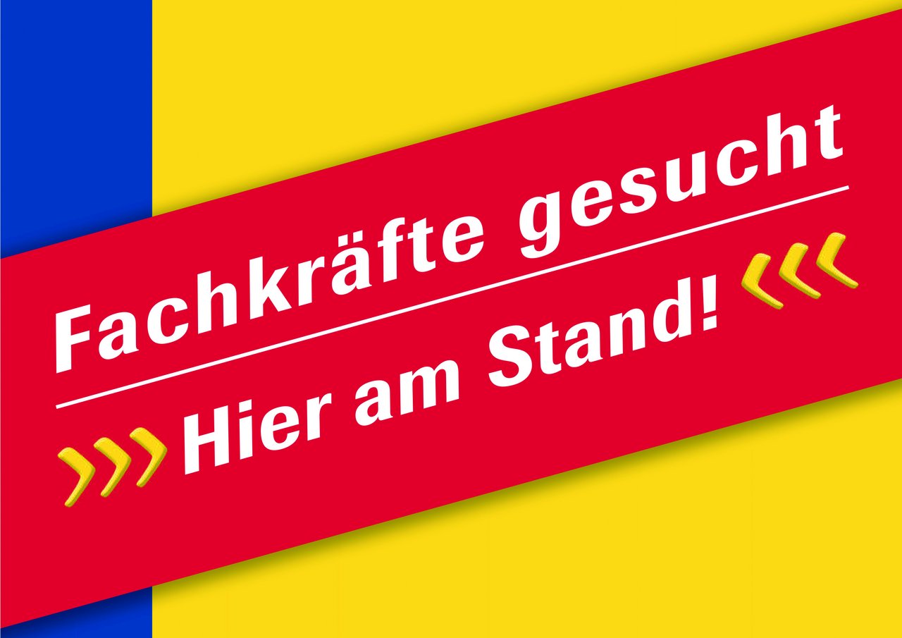 Auffällige Plakate zeigen, an welchen Ständen Fachkräfte gesucht werden.