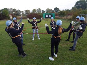 Jetzt lösten die Schülerinnen und Schüler mit ihrer Lehrerin Carmen Bettina Kedziora den Gewinn ein und nahmen an einem Teamtraining von TresFun im Hochseilgarten Wölfersheim teil. Neben einer Menge Spaß standen Teamgeist und Miteinander sowie die Überwindung von Grenzen im Mittelpunkt.