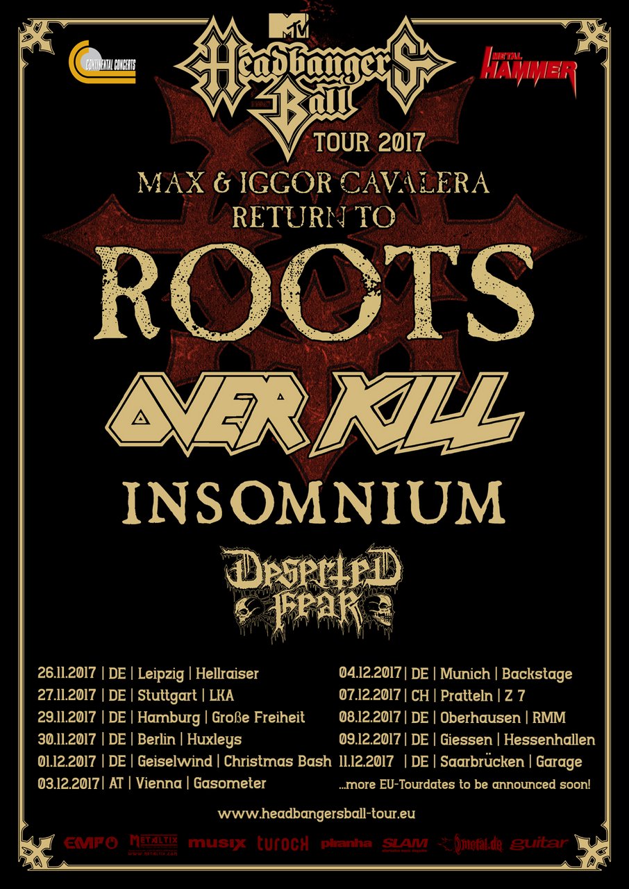 Nun geht das erfolgreiche Konzept in Serie und bringt auch 2017 wieder die Hallen zum Kochen. Und auch das Line-Up bezeugt die Zeitlosigkeit des Genres. Als Top-Act spielen MAX und IGGOR CAVALERA ihr RETURN TO ROOTS - Set. Die brasilianischen Brüder haben durch ihr Wirken mit SEPULTURA bereits ein wichtiges Kapitel Heavy-Metal-Geschichte geschrieben. Auch, wenn MAX CAVALERA bereits mit SOULFLY seinen eigenen Weg eingeschlagen hat, finden sich die Brüder des ursprünglichen SEPULTURA-Line-Ups wieder zusammen, um ihr wichtigstes Werk vereint zu präsentieren.