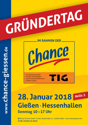 Die Selbstständigkeit als möglicher Karriereweg? Wer DIE Geschäftsidee schlechthin hat, sollte den große "Gründertag" besuchen, der in Zusammenarbeit mit der Technologie- und Innovationszentrum Gießen GmbH (TIG) nach einer erfolgreichen Premiere bereits zum zweiten Mal in Halle 5 stattfindet. Hier erhält man Antworten und hilfreiche Ratschläge für den Weg ins die Selbstständigkeit. Ab 10.15 Uhr sind Fachvorträge zu Themen wie Businessplan, Finanzierung, Förderprogramme und Marketing zu hören. Um 15 Uhr wird der Impulsvortrag "Venture Capital & Crowdfunding - Alternative Finanzierungsmöglichkeiten für meine Gründung?" angeboten und ab 16 Uhr berichten erfolgreiche Existenzgründer von ihren Erfahrungen. Ziel des "Gründertags" im Rahmen der Chance ist es, Gründungswillige gezielt zu beraten und jungen Menschen die Selbstständigkeit als möglichen Karriereweg aufzuzeigen.
